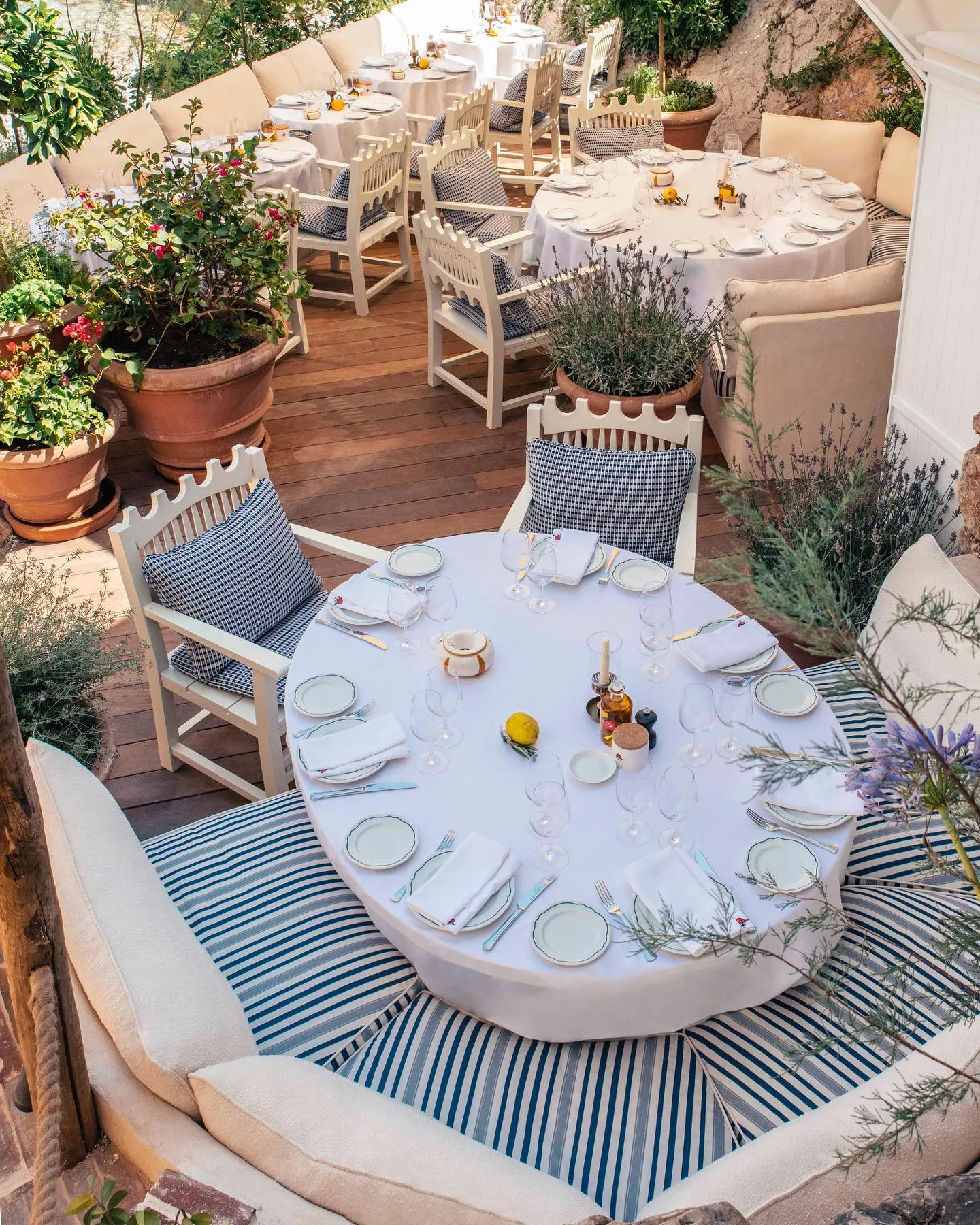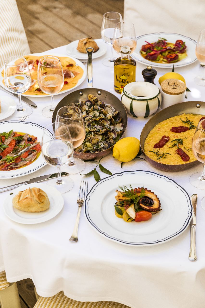Loulou isn’t just about food—it’s a full sensory experience. A curated wine list features over a hundred references from French and Italian producers, while oversized classic and signature cocktails keep the mood lively. As the day unfolds, lunchtime transforms into a breezy fête—where Champagne-fueled revelry, DJ sets, and dancing on tables blend seamlessly with the lull of the waves.